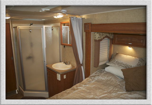 Some clever designing on the part of Holiday Rambler gave us almost all of our desires in the form of their 2008 Savoy 34ft model….well done guys!